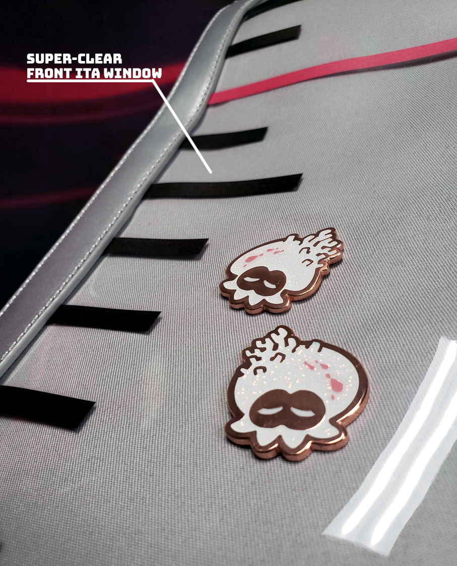 The Ink Tank Ita bag is designed with (1) padded pocket for electronics and (2) padded pockets for controllers. On the back of the bag there is a hidden flat zipper pocket for smaller items. The webbed/threaded matching straps are perfect for both over the shoulder wear or backpack wear. With 6 D-Rings around the bag, the wearability is versatile and can be customized to your preference. This bag is perfect for gaming events!